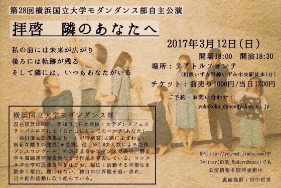 第28回 横浜国立大学モダンダンス部自主公演「拝啓 隣のあなたへ」のご案内